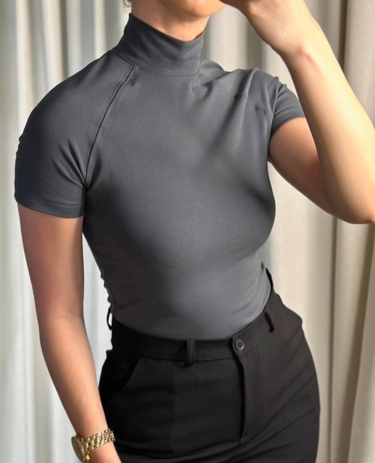 Stili i kësaj bluze është totalisht pas trupi, me një material të plotë dhe të ngjeshur.