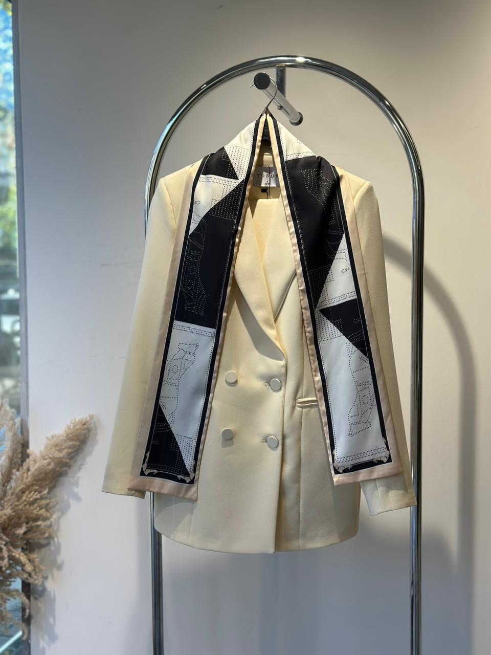 Shall i hollë mëndafshi me printe gjeometrike minimaliste, i përshtatshëm për ta lidhur në qafë, flokë ose çantë. Përmasat 150 x 14 cm. Posta nuk perfshihet ne cmim.