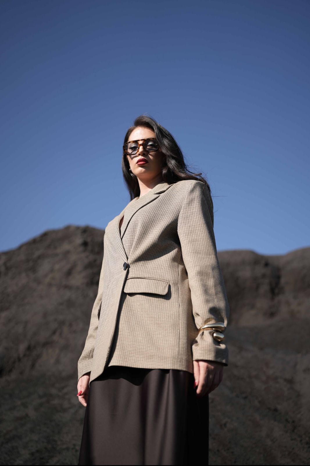 Xhakete me kuadrata oversize dhe dy kopsa per t’u mberthyer sipas deshires ne bel.