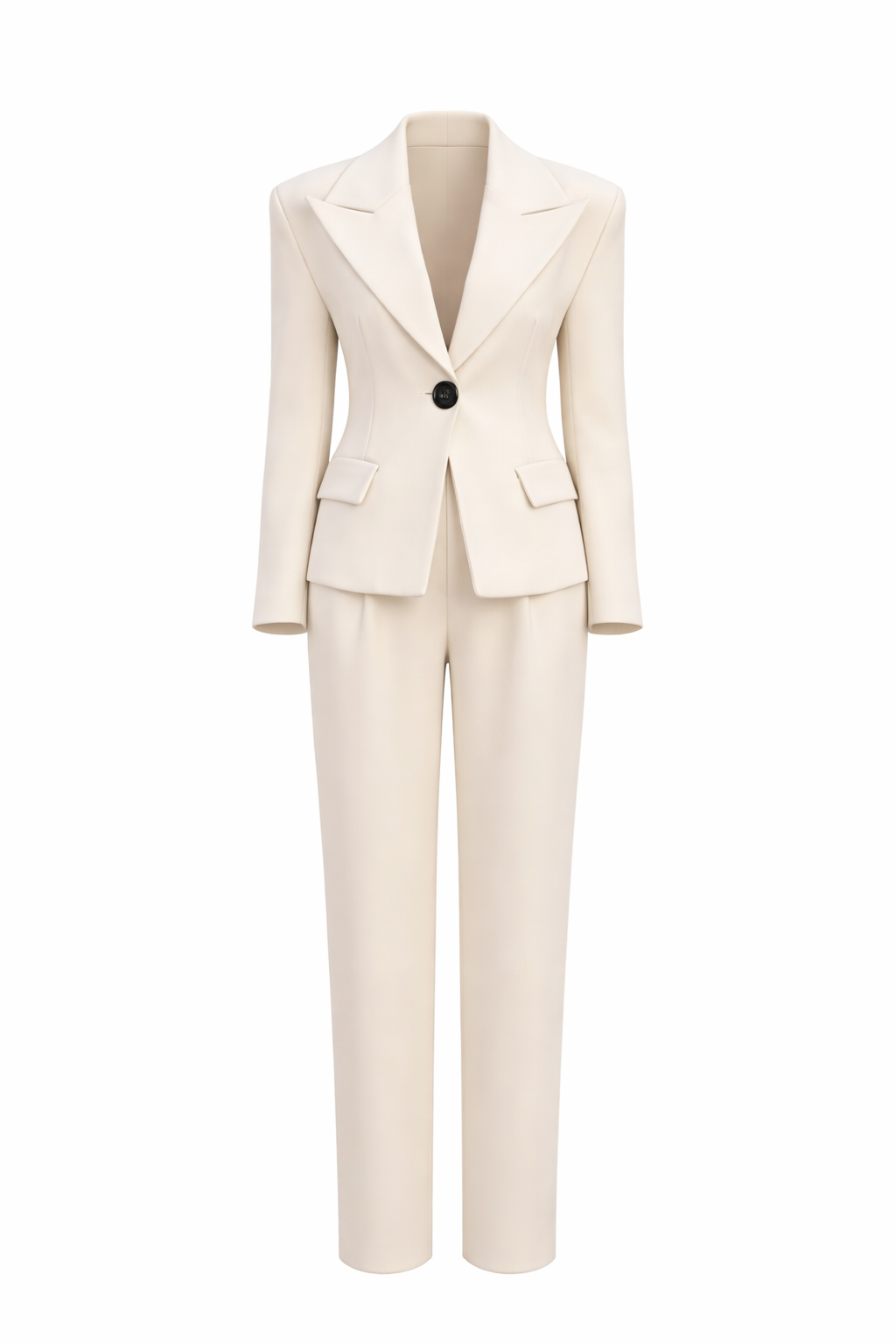 Kostum klasik me nje kopse dhe bel, jake e madhe, pantallona kaush, ngjyre pana.
