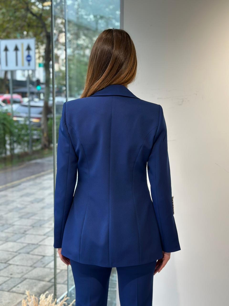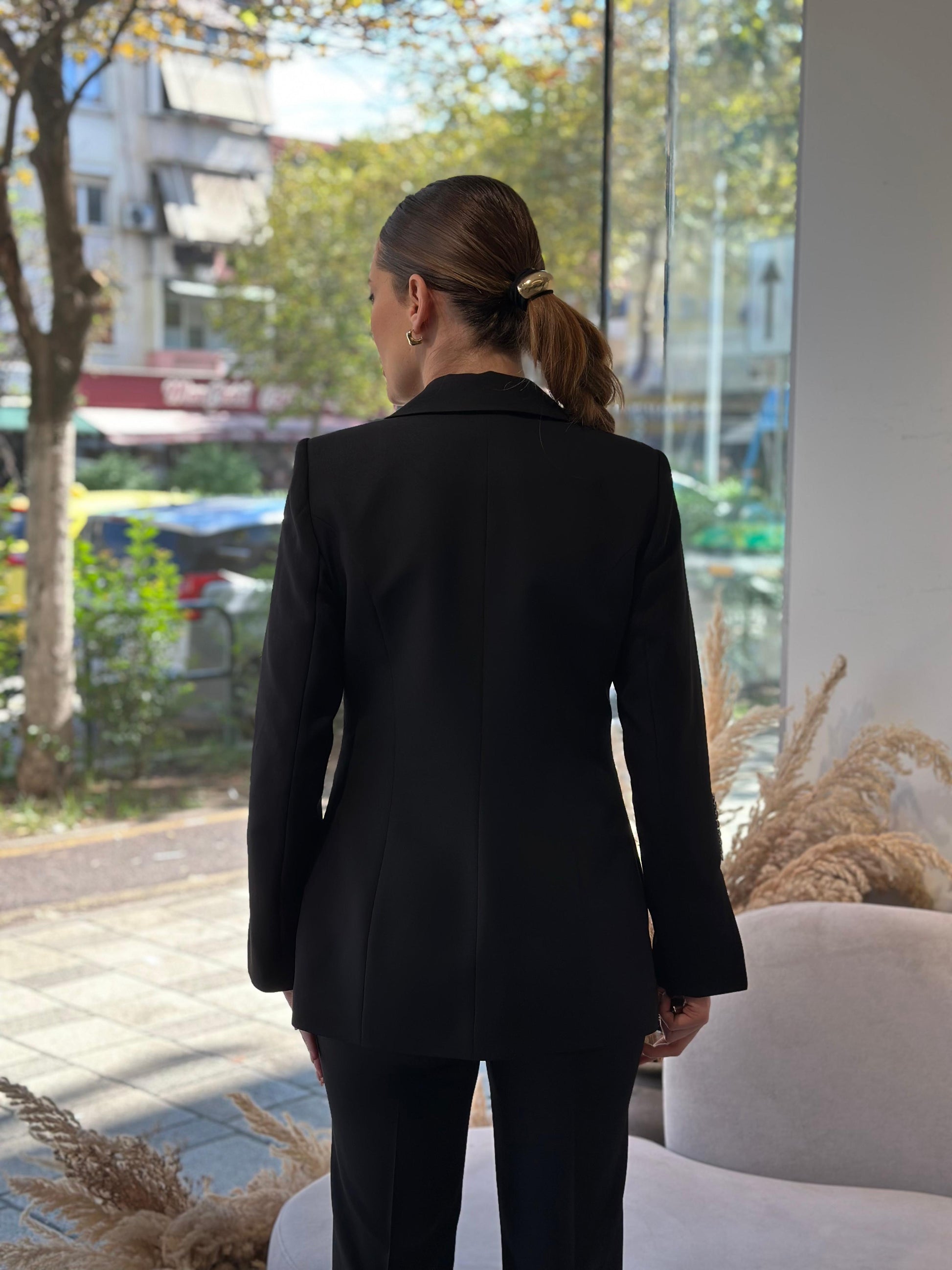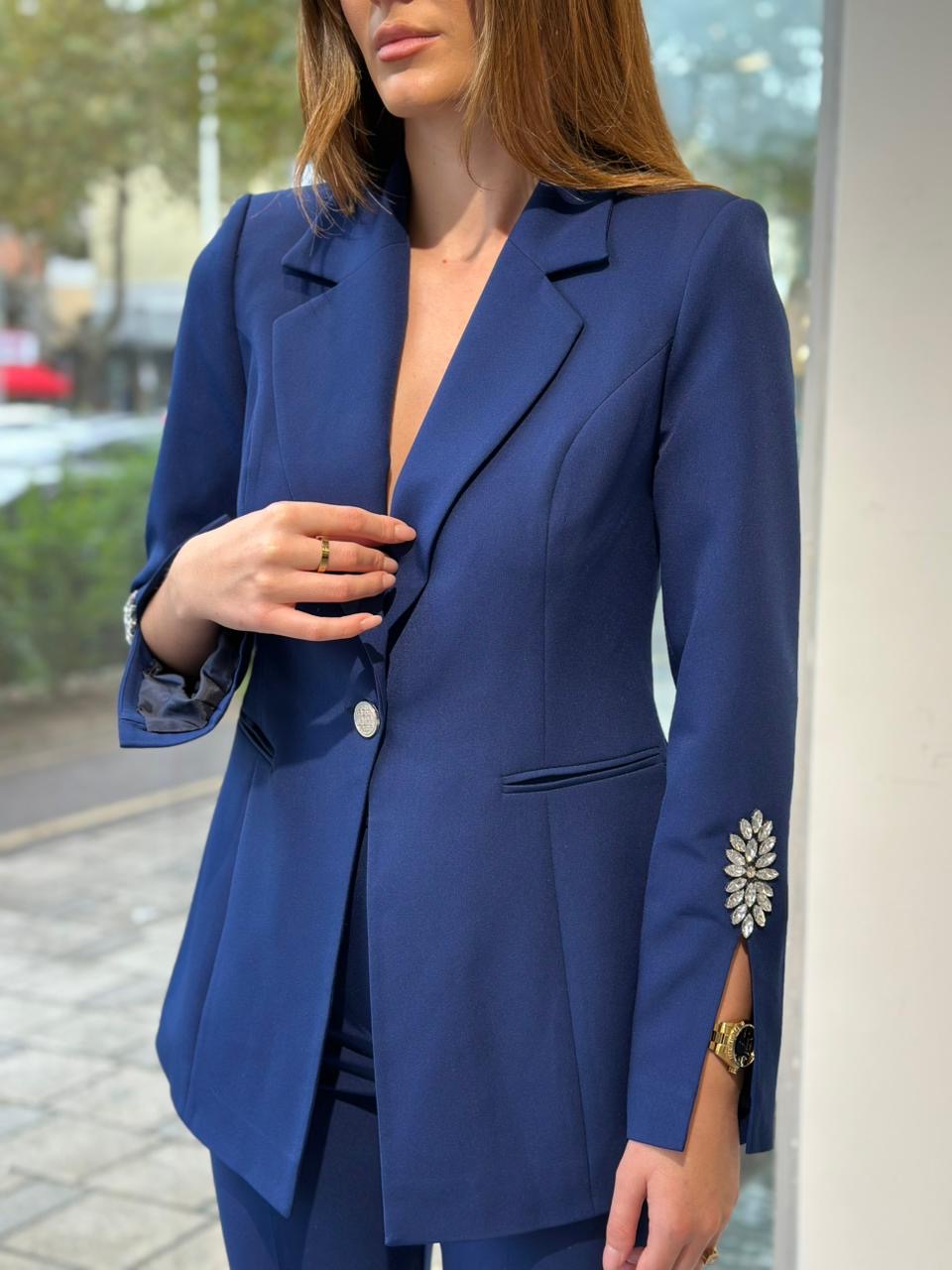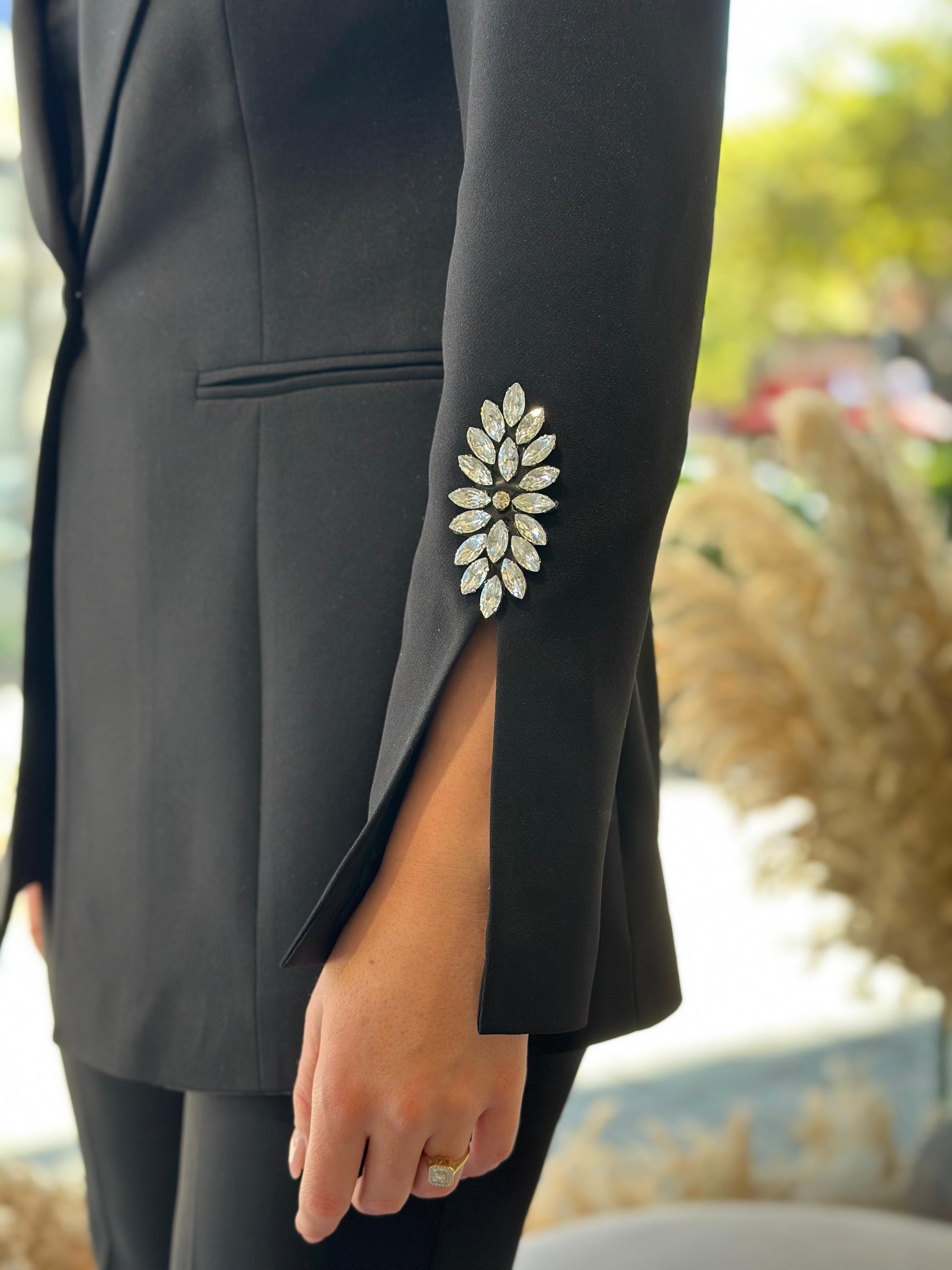 Kostum klasik me nje kopse. Menget e xhaketes te cara dhe me aksesore me gure ne fund te se cares.
