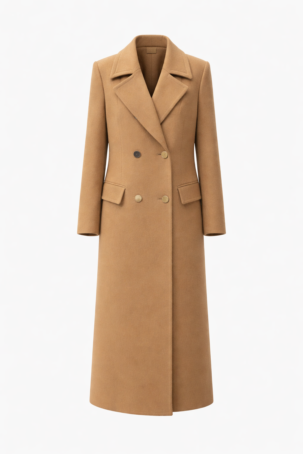 Pallto e gjate ne ngjyre caramel/camel. Prerje klasike chic, stil i drejte. Cilesia premium - material i plote, kryesisht i perbere nga leshi.