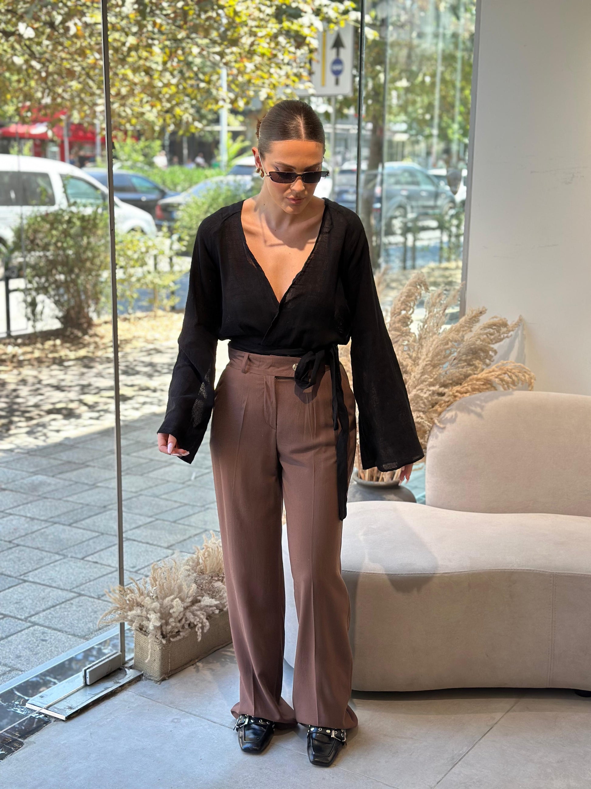 Pantallona stil paralel. Material mix mes lino dhe viskoze. Te lehta per stinen e veres dhe pranveres.