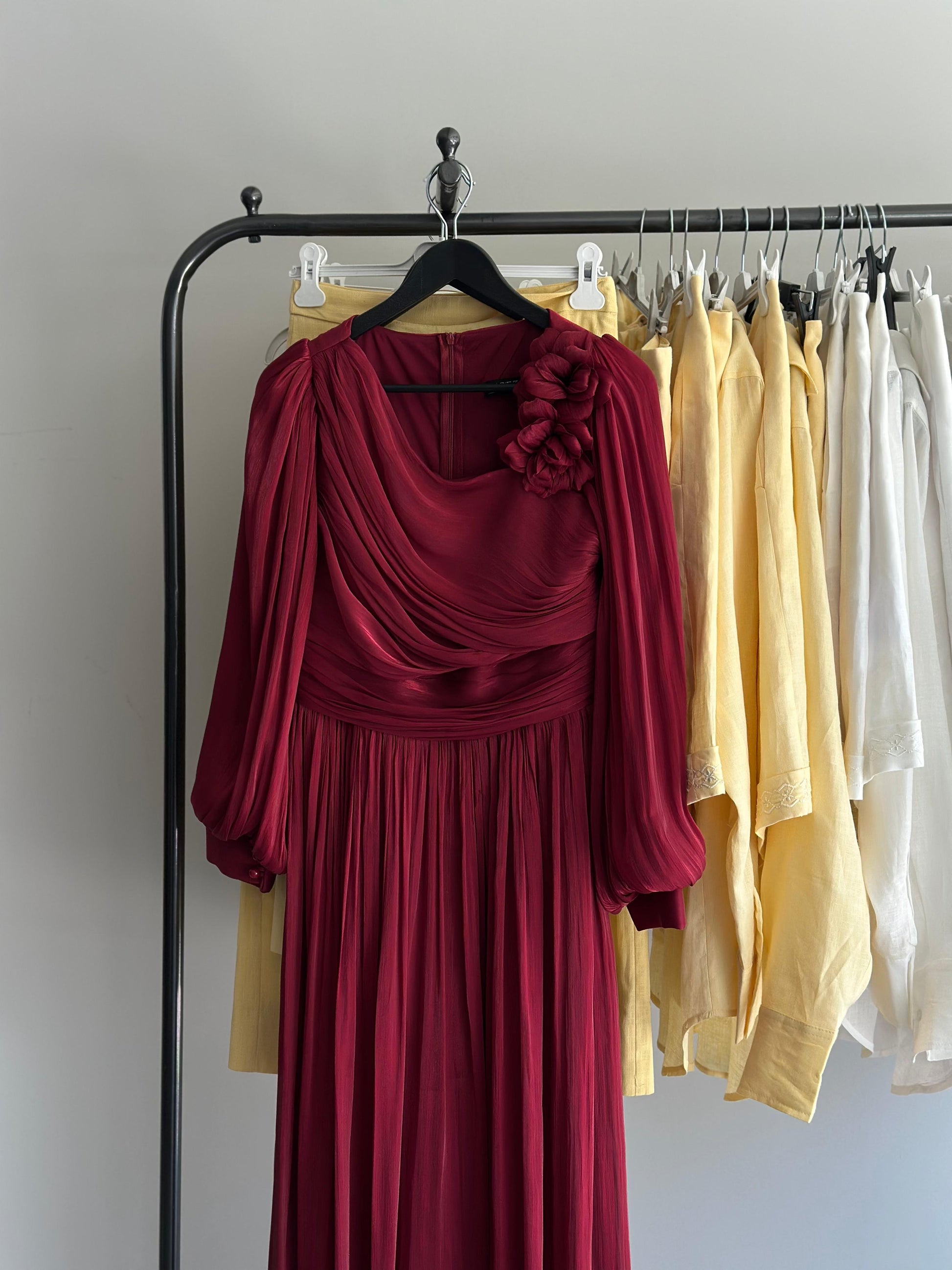 Fustan i gjatë në një copë cilësore, me astar të plotë brenda në gjithë gjatësinë e tij.