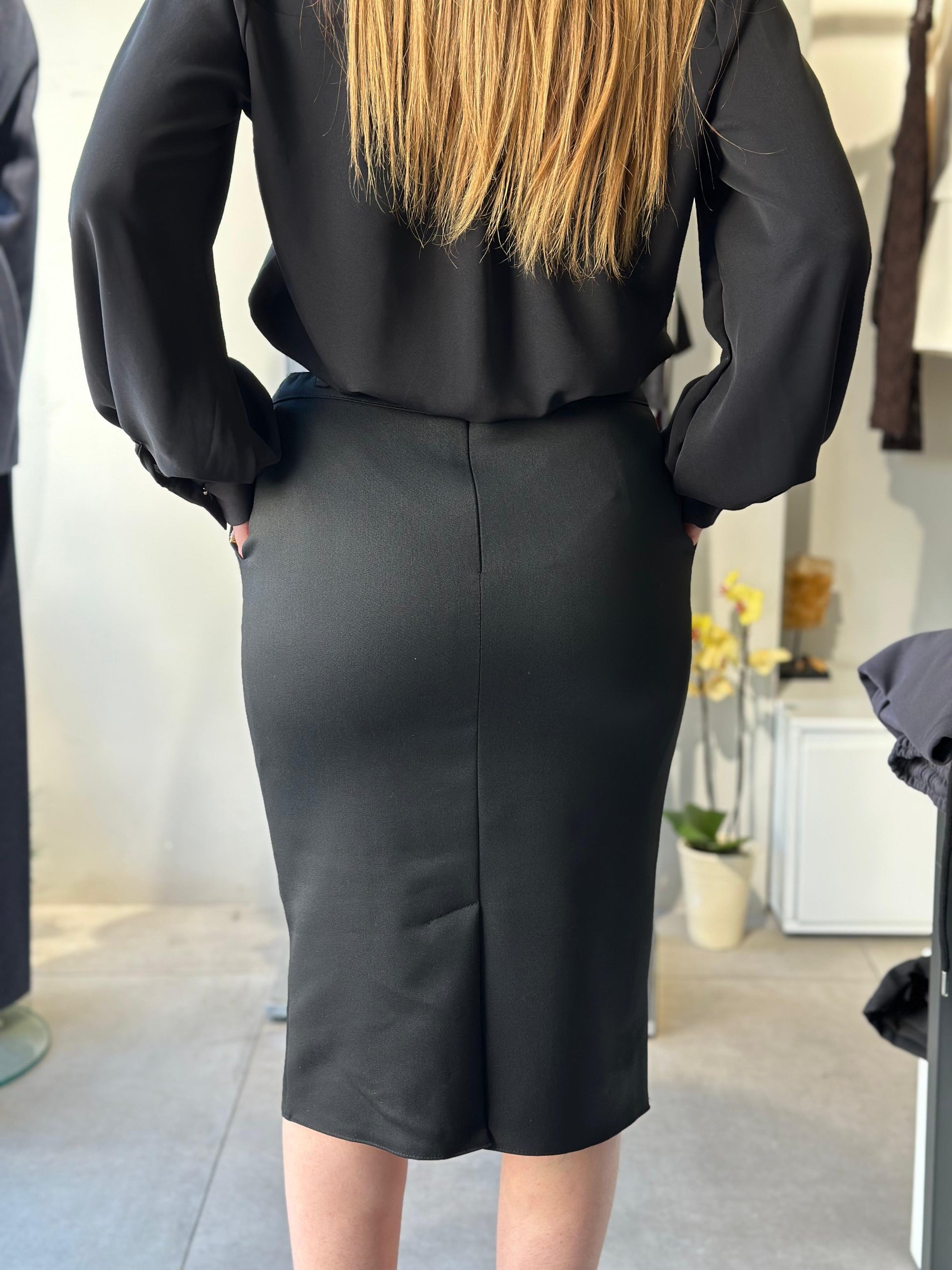 Fund slim me gjatesi deri tek gjuri. Nje e care e mbyllur perpara, me bel te larte.