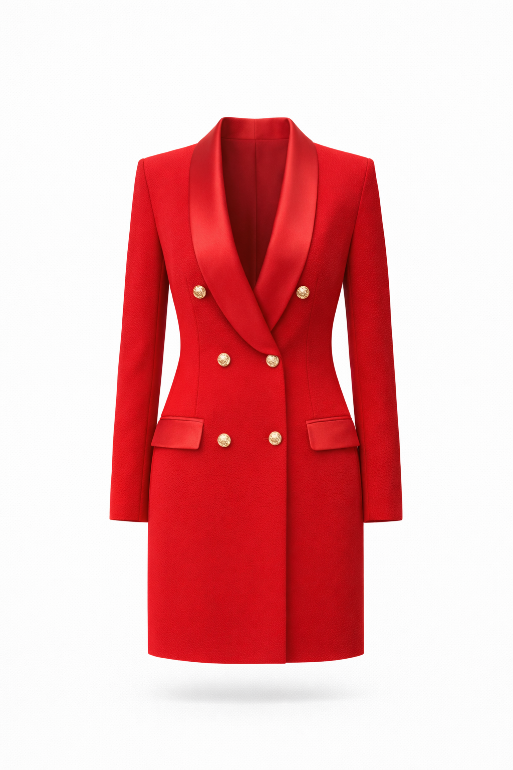 Fustane xhakete me jake sateni dhe 6 kopsa gold perpara. Gjatesia mesatare posht gjurit.