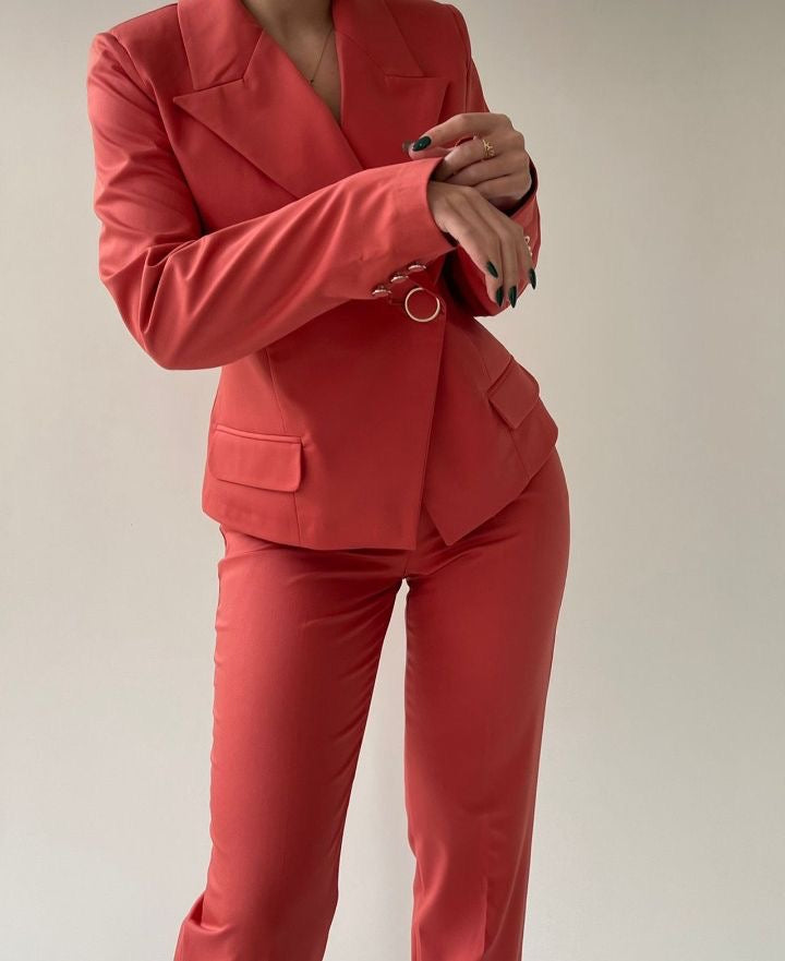 Kostum terital fit me nje kopse qe kapet anesore per te krijuar bel. Kopsa me ngjyren e kostumit.