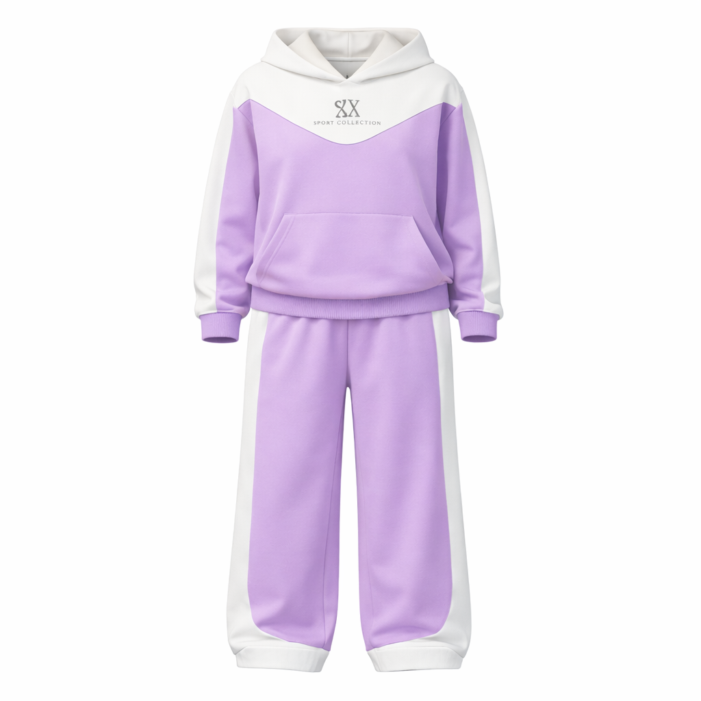 Kostumi sportiv vjen në material modal, copë e derdhur pranverore. Në dy kombinime ngjyrash: LEVANDER (me pana) dhe PANA (me levandër).