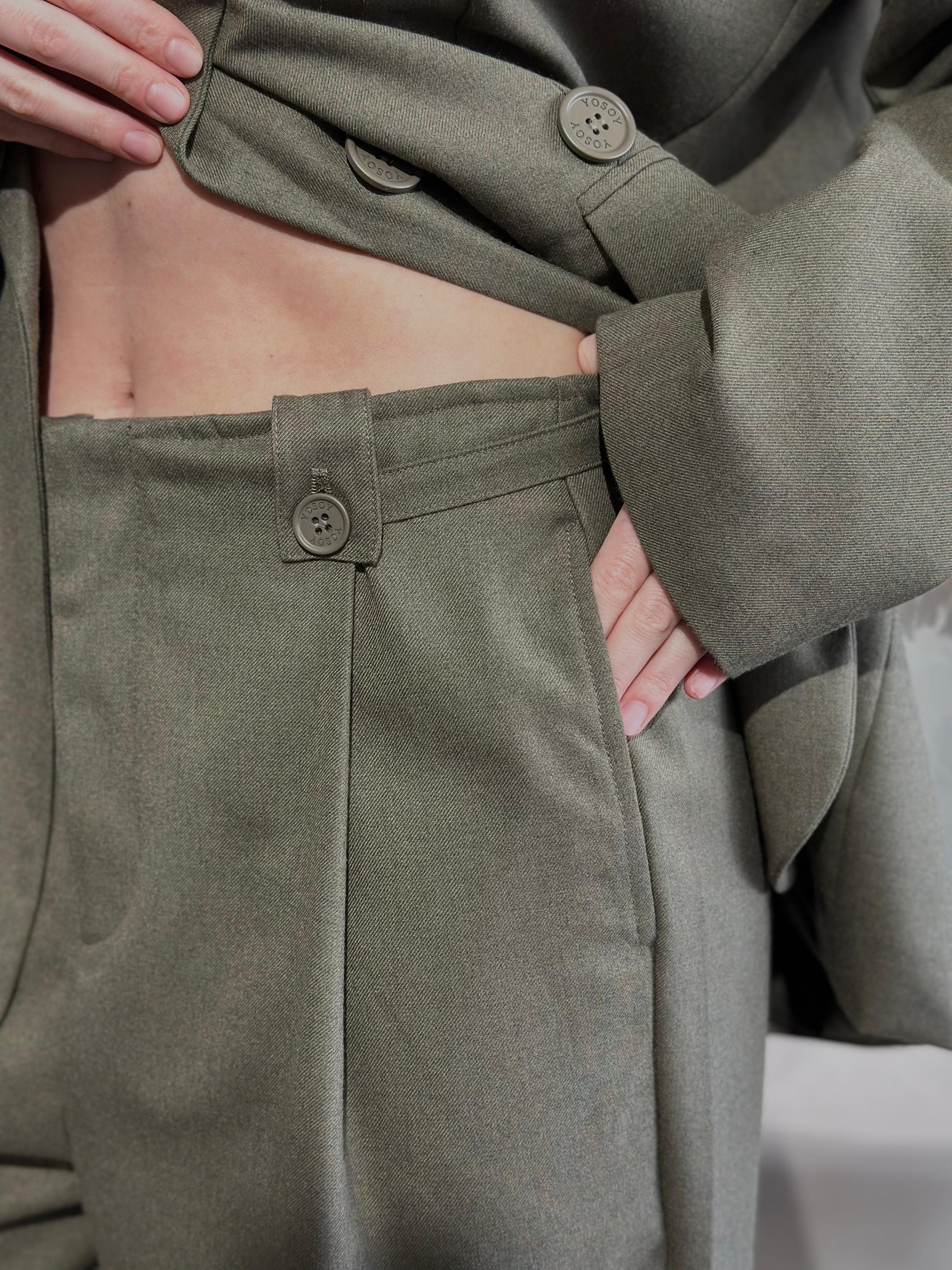 Pantallona te gjata, stil i gjere, pa qemer. Shtrati i gjate por i lirshem. Shoqerohen nga nje rrip i holle nga vete copa qe lidhet sipas deshires.